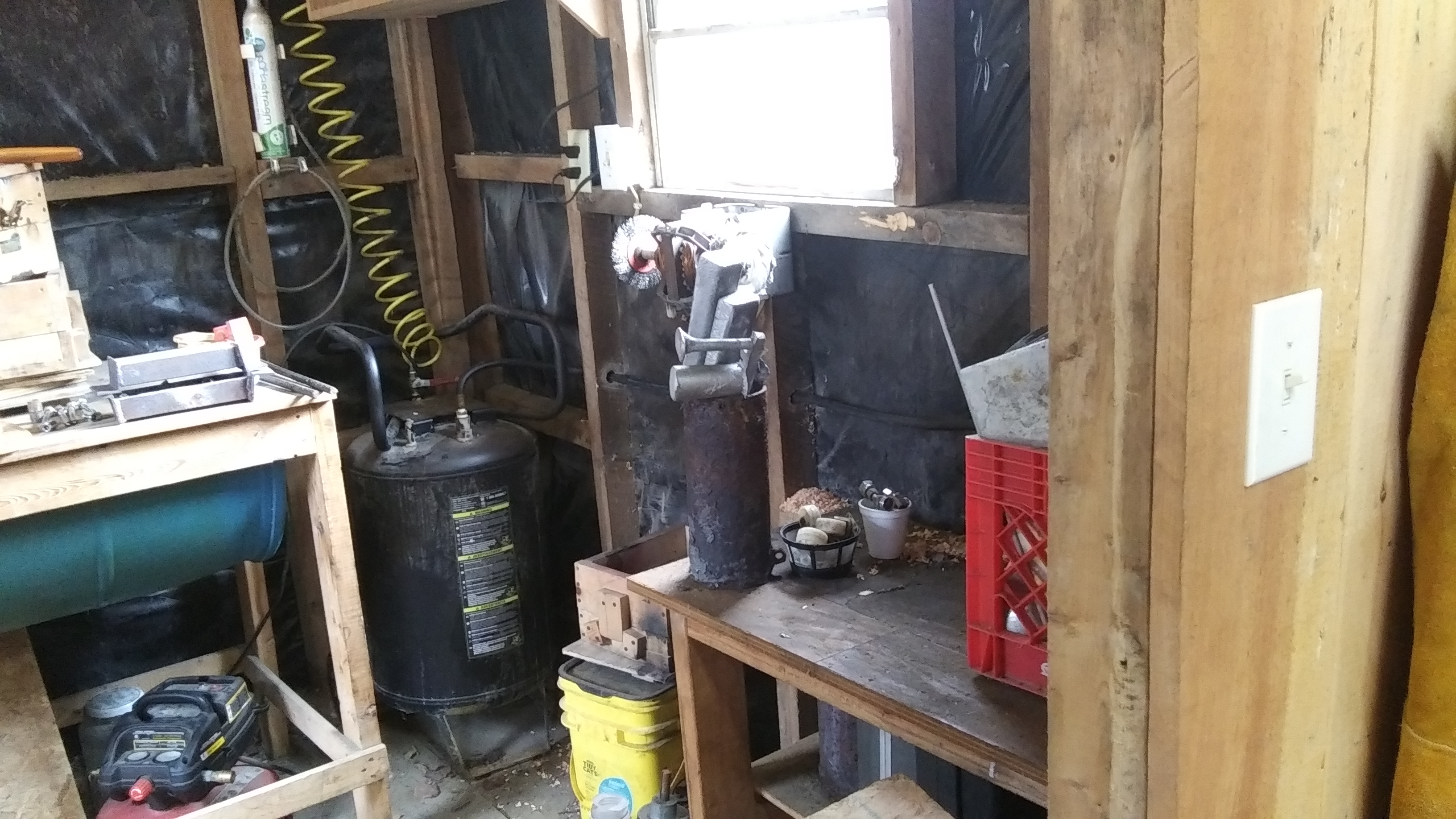 Other than that last manifold block and plumbing it out to the compressor shed, most of the compressed air system is done in the shed and I can already start using it. I do have a tiny tiny leak in the manifold block over the molding bench, but that manifold block/system is on a ball valve that gets shut off when Im done for the night anyways, and it usually takes a few hours for what's left in the lines to bleed off. Im pretty sure the leak is in the one air hose, so it should be easy enough to fix hopefully.