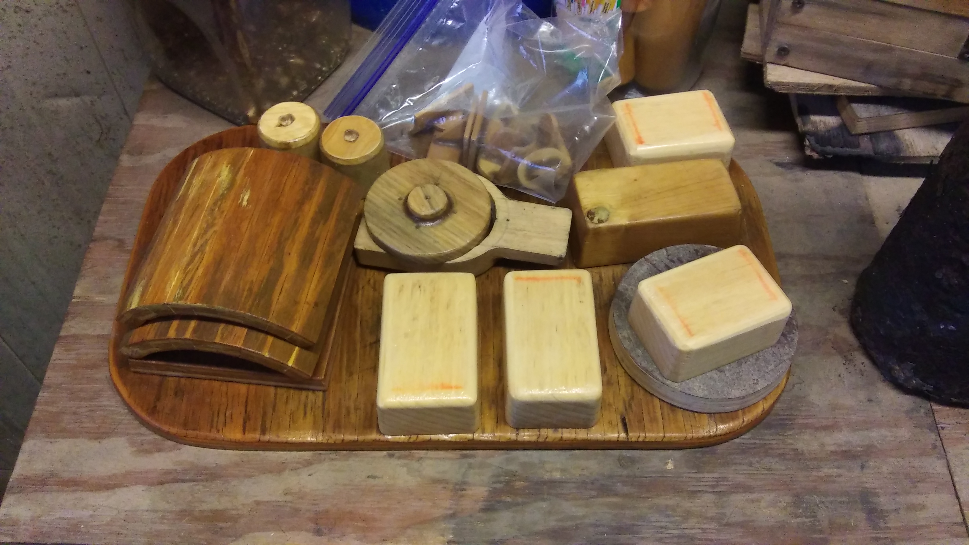 I got tired of only casting out one manifold block per sand mold, so I grabbed some pine I had sitting here and used the cooper's plane to cut draft angles on it and clean it up, then rounded the edges/corners over with a block plane and some sandpaper. Now I have a bunch that I can ram up all at once and cast a bunch when I need them in bulk. The big ones at the bottom are replacement ones for the pattern Ive been using, and the smaller ones at the right are the ones for the shop since I dont need or want as large of manifold blocks in there.