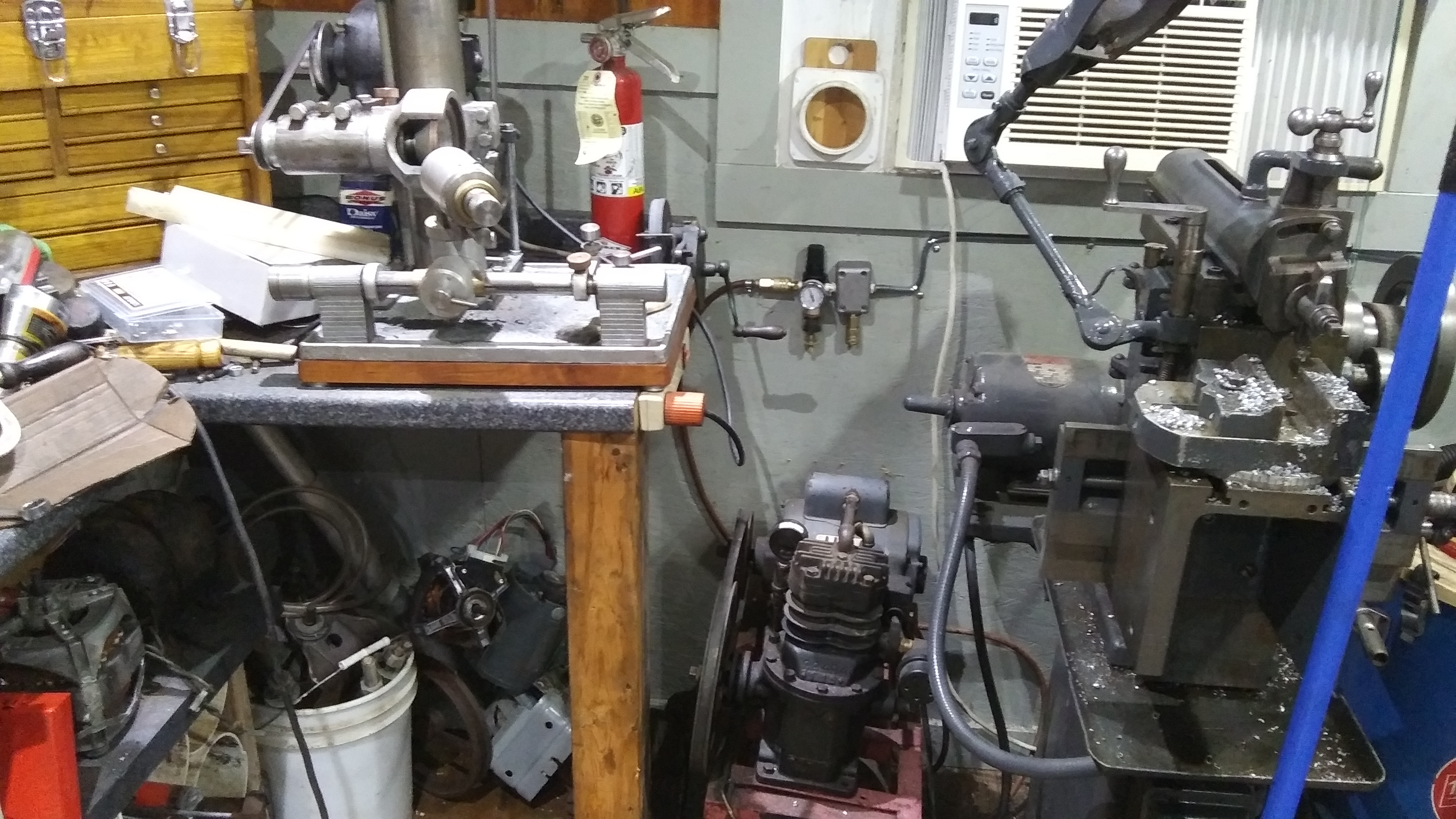 While I was out there, I went to start doing up some sand molds to cast out the air manifold blocks, and the air compressor really was bugging me on some things, so I took a side tangent to tear the air compressor apart and see what was going on with it. It took a while to pump up the tank, usually 30 mins to pump up both air tanks, and had a weird sound that constantly sounded like air hissing out of the head of the thing, and I couldnt find it. I took it all apart and realized that the O ring/gasket that goes in between the top of the cylinder/liner and the head, it was blown out and wasnt even in the groove, and had actually stretched so badly that I couldnt get it back into the groove no matter what I tried. I finally gave up and went to the shop and found a rubber O ring the exact size I needed and using a tiny bit of grease, I stuck it in the groove so I could put it back together, after adding a super thin film of grease to the cylinder too to help it get a little better of a seal. It made it pump up in around 10 mins, quieted it down a bit, and now the compressor is running like brand new, lol. The air compressor would stall out at around 40-50 psi before because of too much draw on the motor and not enough power to the shed, now it pumps up to 125 psi without breaking a sweat.