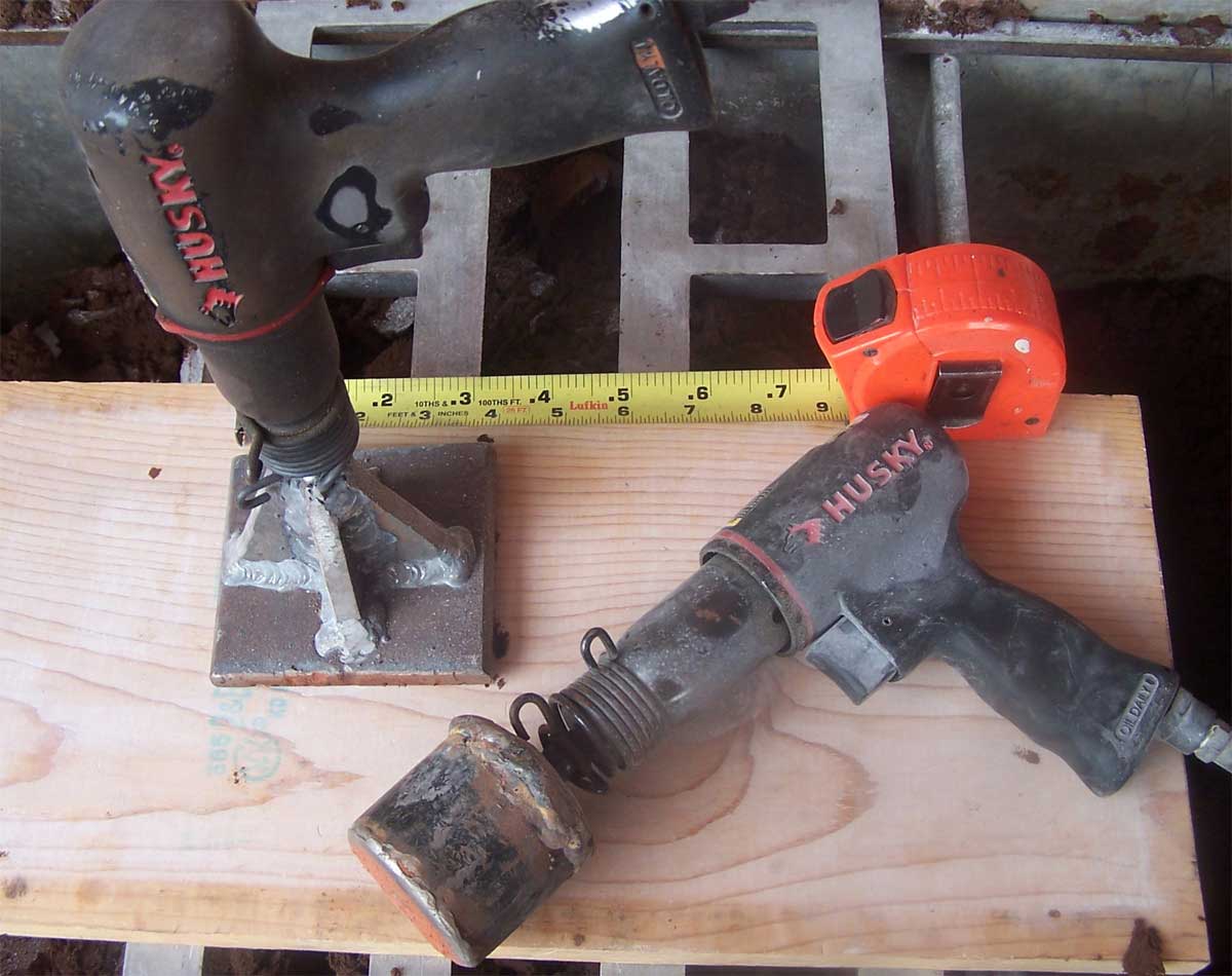 Using as air chisel from Home Depot I welded up a butt onto one of the chisels. I have since made a larger butt using a square piece of heavy plate that I prefer over this one.