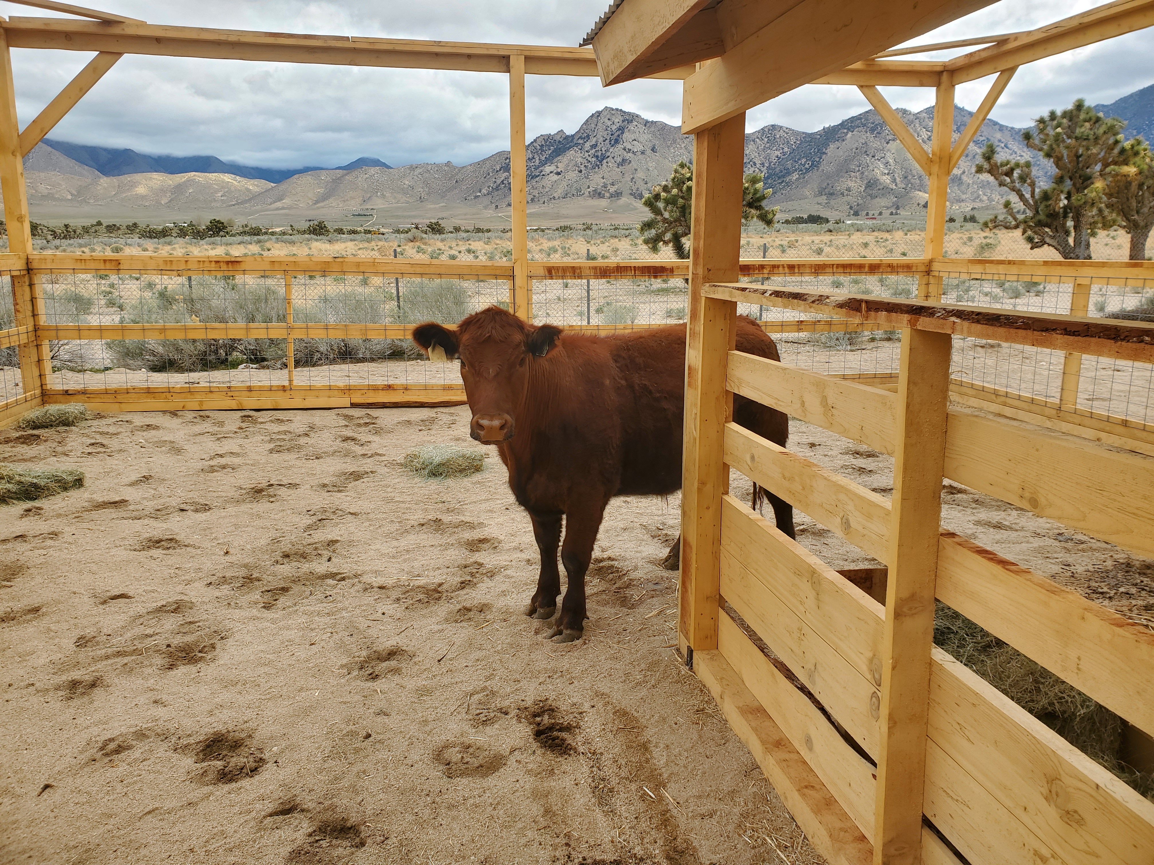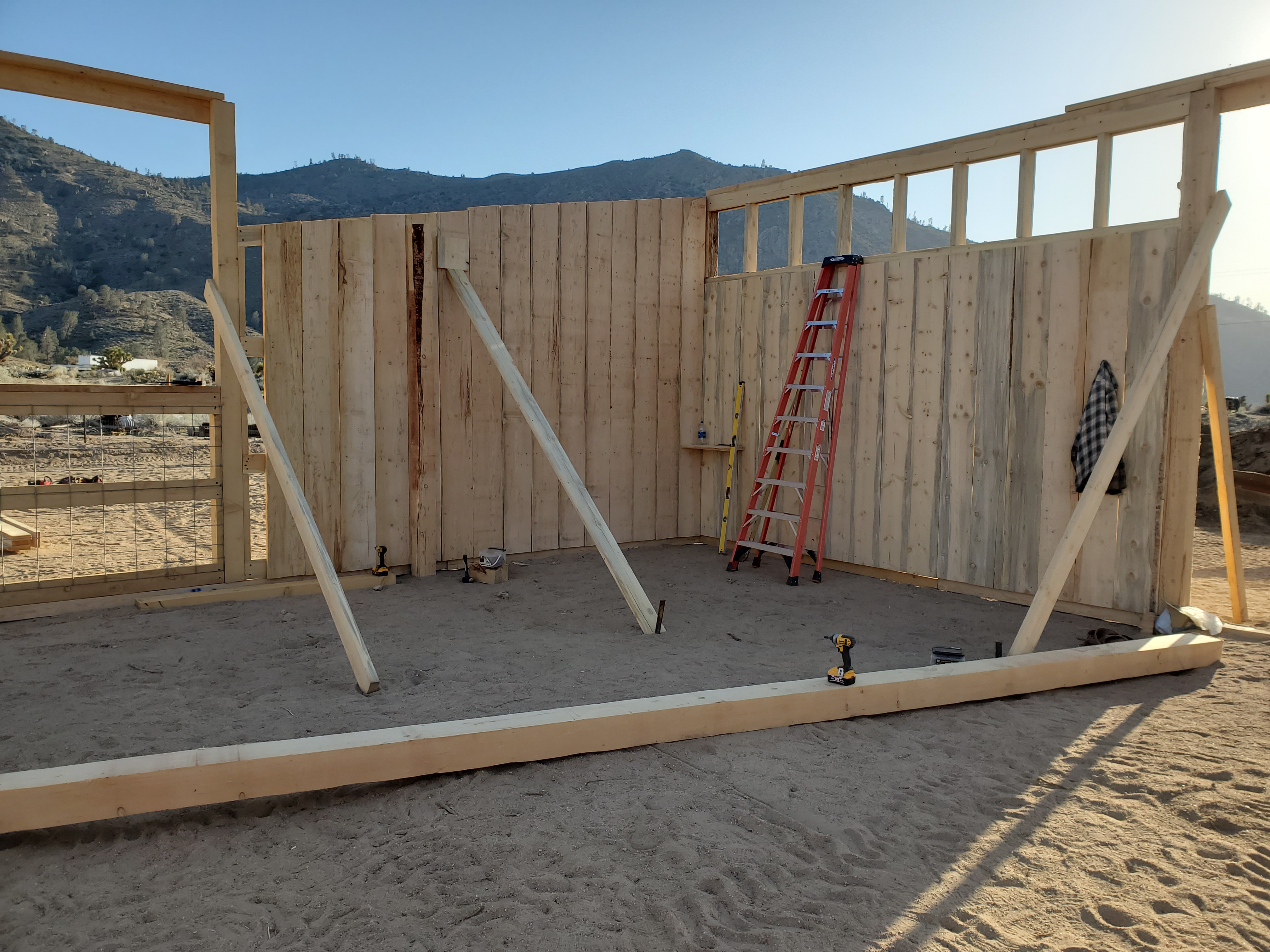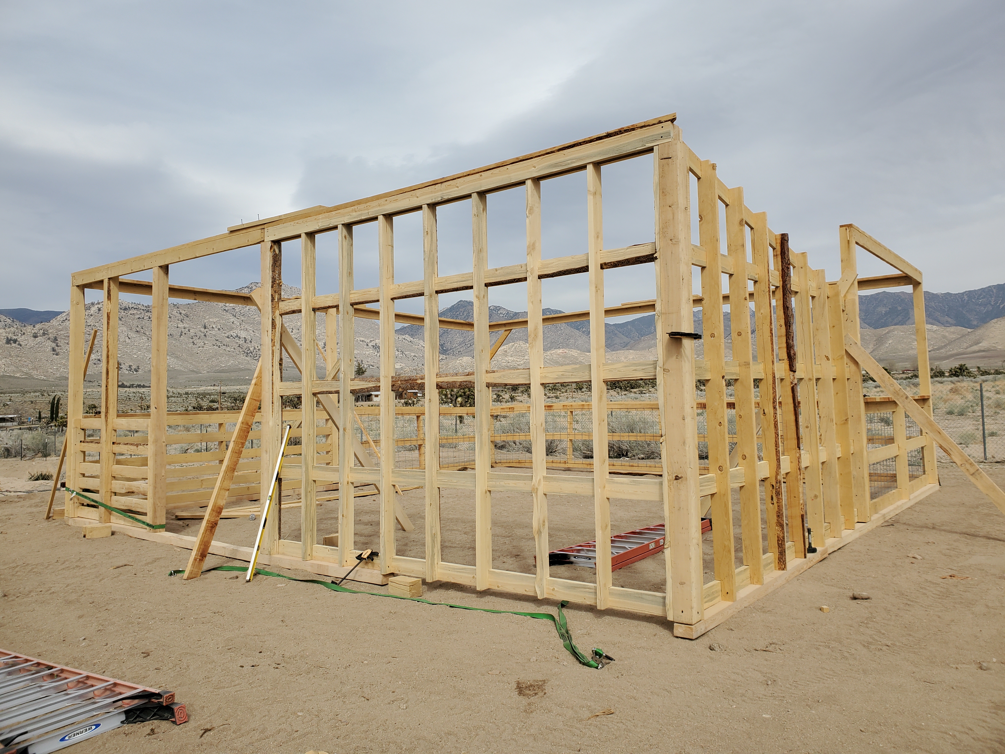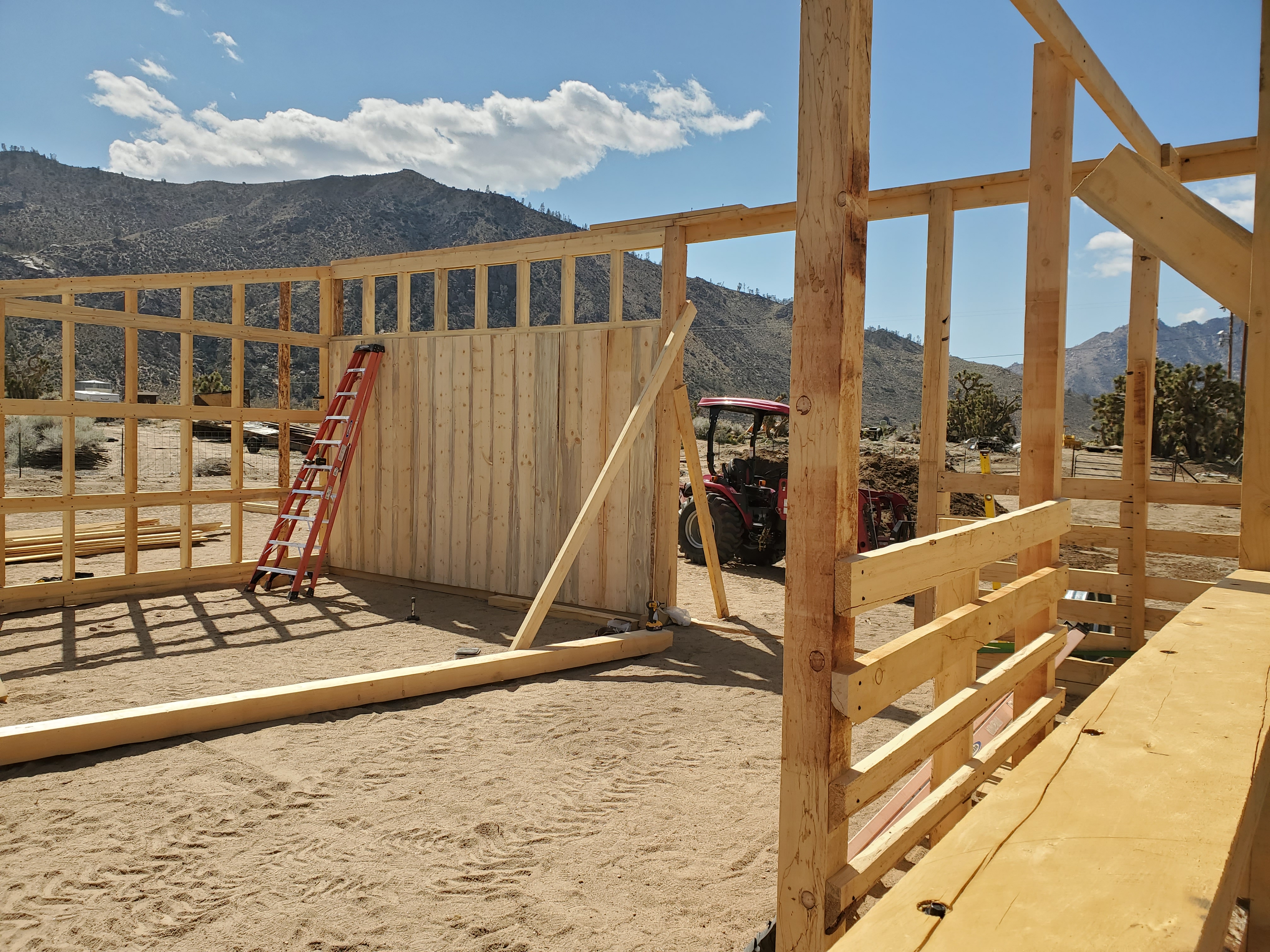 The tall posts are all 13' 6" x 6"s. I made it this tall so I can install shade cloth and still have misters and operate the tractor in the pen.