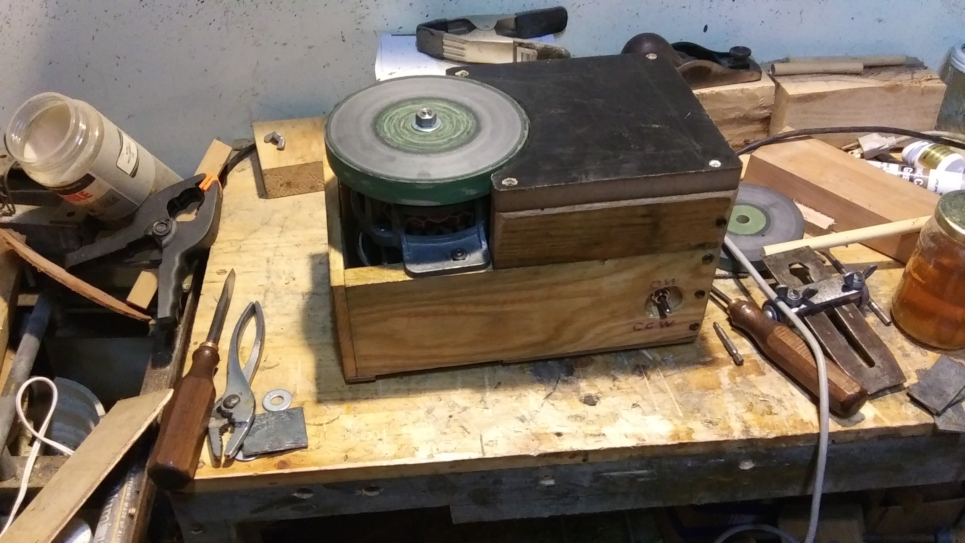 Well, this one isnt really hand planes or hand tools, but it kinda applies to it in a way, lol. Ive been using an old wet grinder that I modified (water pump gave out ages ago in it), that I took the grinding wheel off and put a piece of MDF from a treadmill, the part that the belt that you walk on rides over, and put polishing compound on it to sharpen stuff. Ive used it for a few years now and it worked better than any other method for sharpening stuff, but the grinder I was using, the one bearing was going out and it sounded pretty clunky, power switch didnt want to turn it on half of the time and you'd have to turn it on and smack it around a bit before it would turn on, and it had very little power, so I was limited to smaller disks for sharpening.