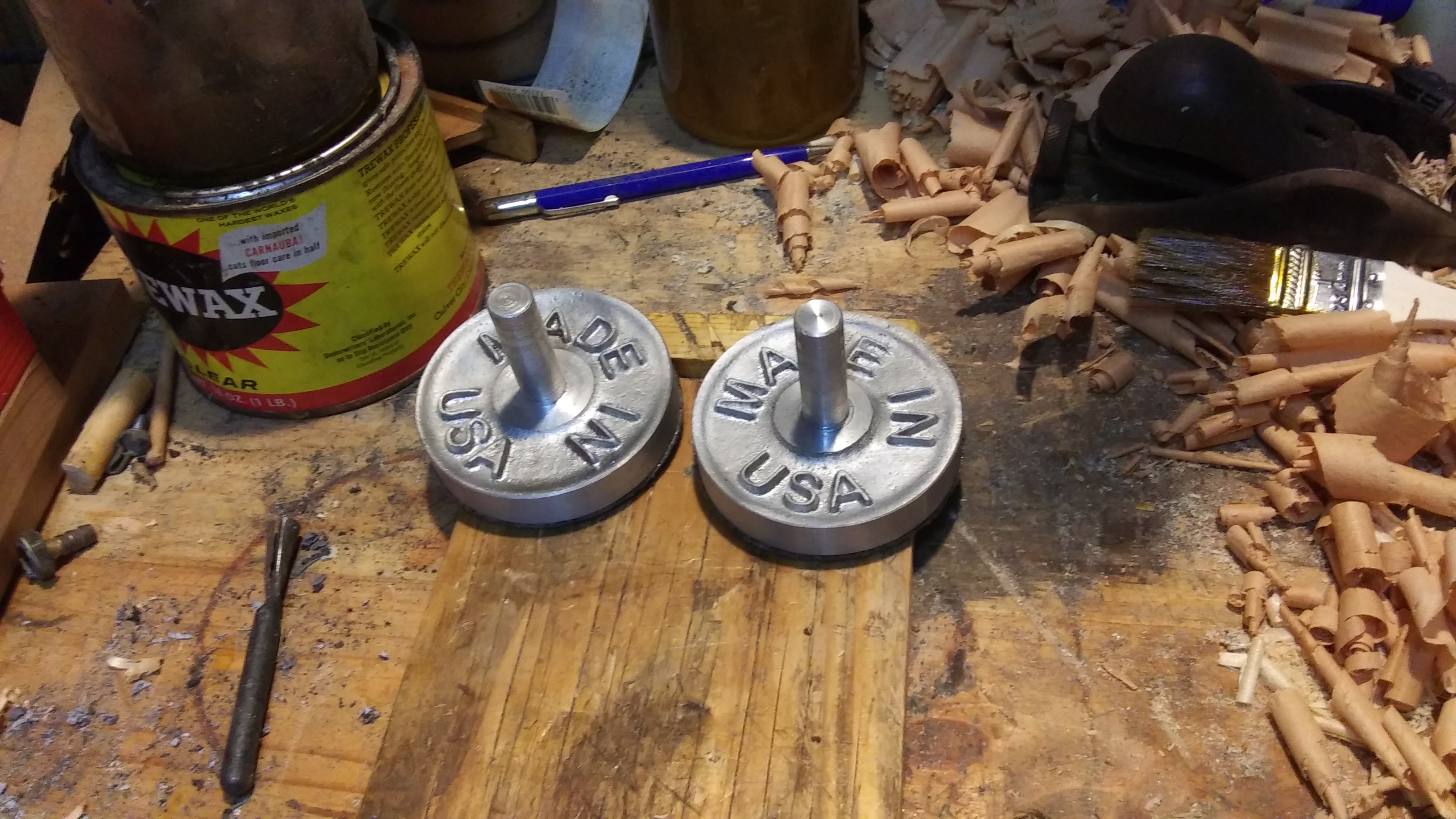 Finished the safety sanders, the one was a failure, so Im just giving it away to a friend. The A on the one filled in and I had multiple patterns in the same flask, and didnt feel like dumping it all back out just to fix that one pattern, so just decided I'd just remelt it, but took it to carving group and the one guy said he'd like to try it out and I just machined it up for him.