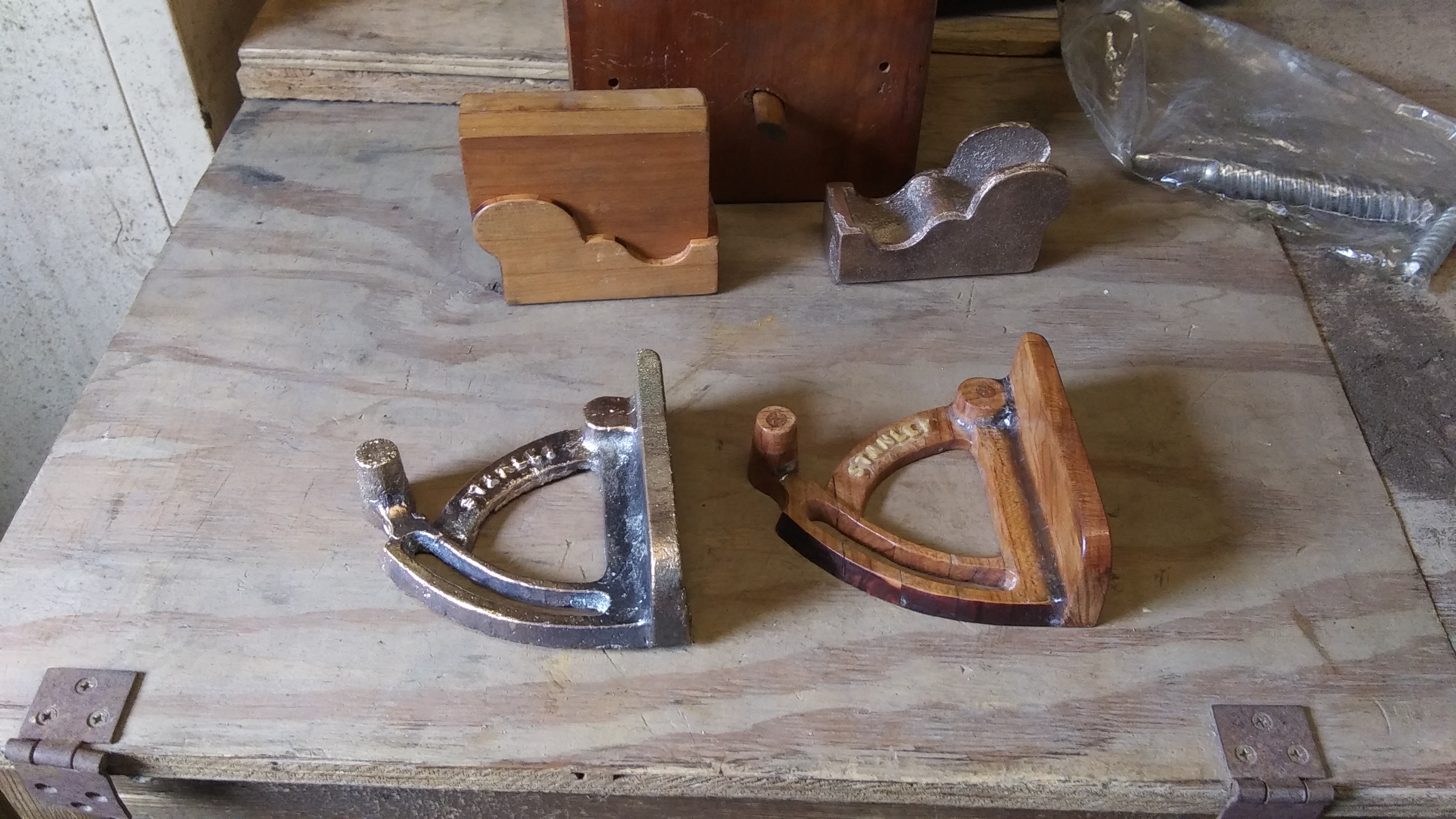 Well, I had another go at the planes and shooting fence, and finally got one, even tho the brass was being a bit more finicky this time I think. It was being poured after dark, so it was harder to judge the temps, even tho it seemed alot hotter, and actually did flow into the mold completely this time.