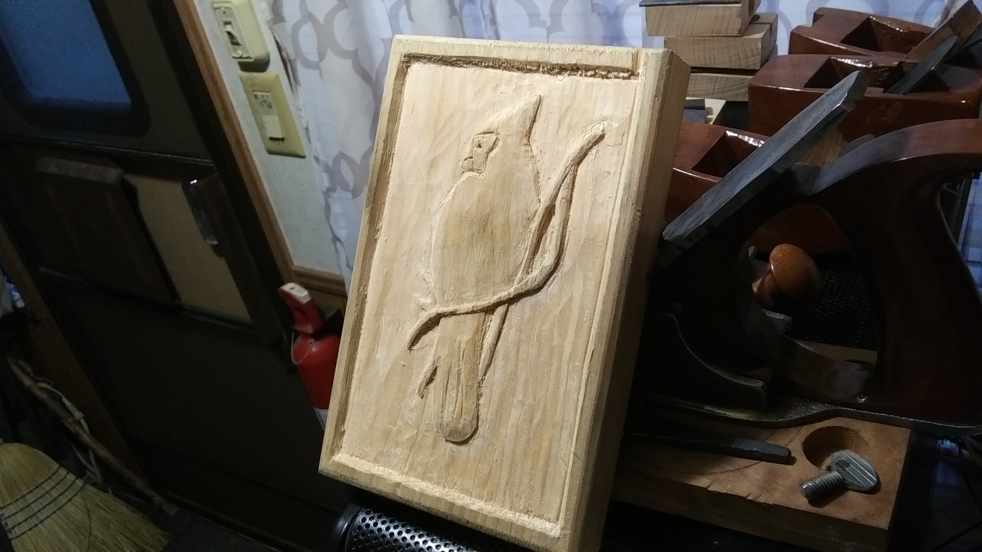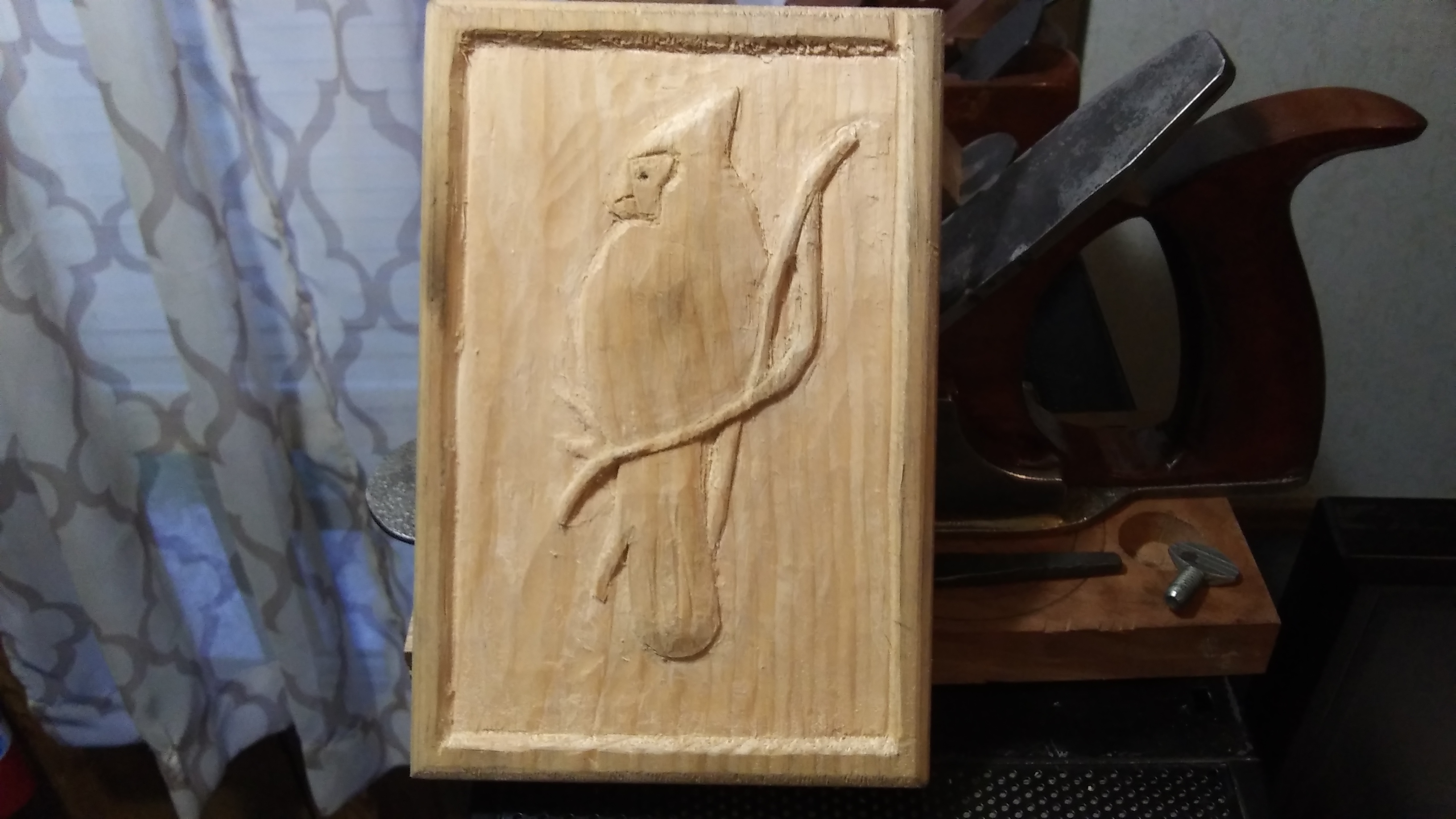 I also have been going to a wood carving group and learning as much as I can from them, which I wanted to learn shallow relief carving, to do up stuff like the carving on old cast iron stoves and on the stove feet since those can get pretty ornamental. My biggest hurdle right now is just learning how to actually draw the acanthus scrolls and leaves more than anything, lol. I didnt know what to carve, so I found some of my great grandmother's drawings and traced over the one using carbon paper to transfer it to the wood, then carved it out. It was done in eastern white pine, which was honestly waay too soft and a bad choice to carve, but it wasnt too bad to carve once I got the hang of it tbh. It really looks better now and has really popped out now that it had a coat or two of shellac soaked into it to stabilize it, and seal it up.