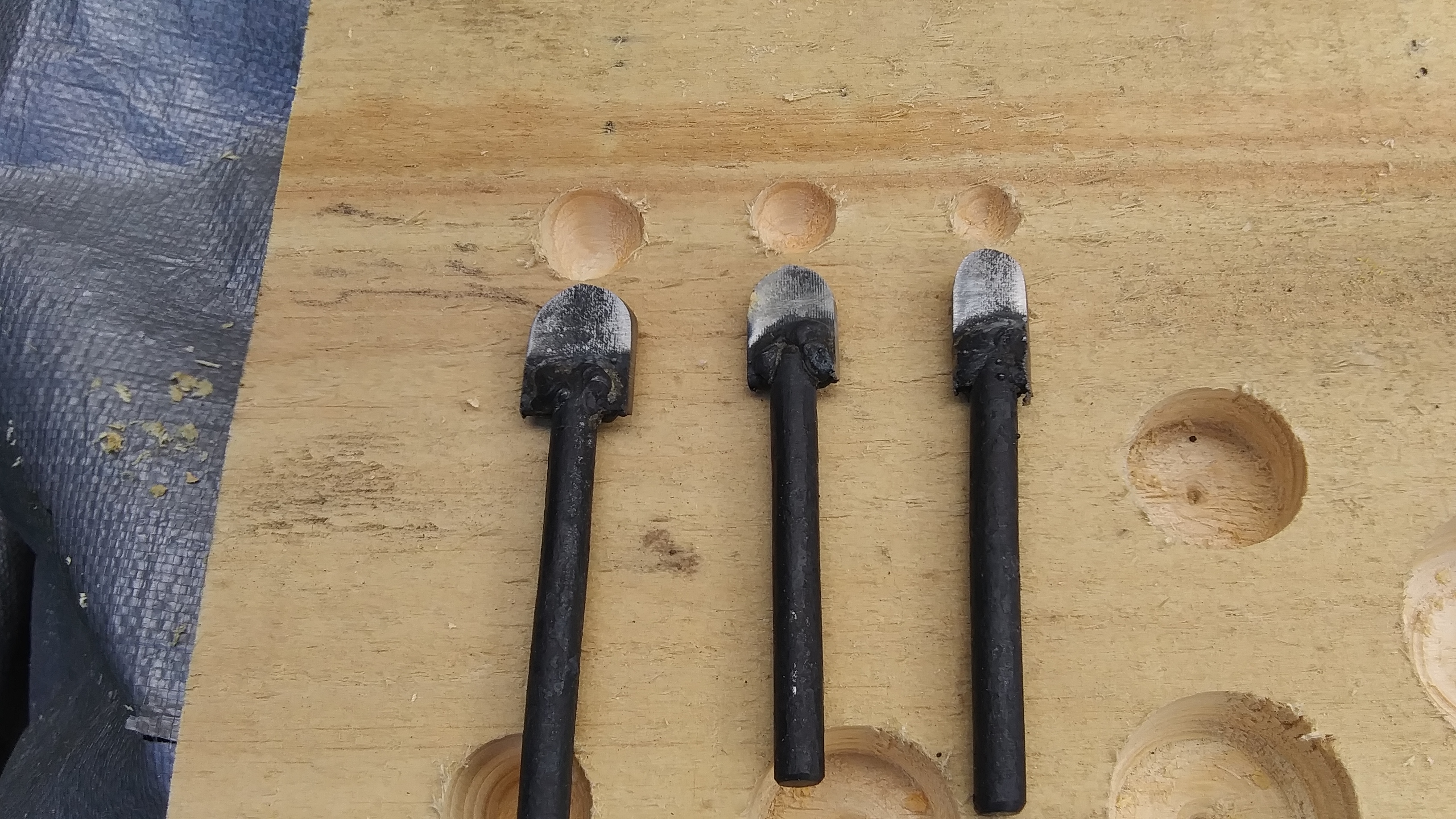 The sizes are 1/8" roundover, and other is 3/16" radius for really large castings. They were made from the same garage door coil spring that alot of my other stuff is made from, and the handles were just turned from hedge apple/osage orange.